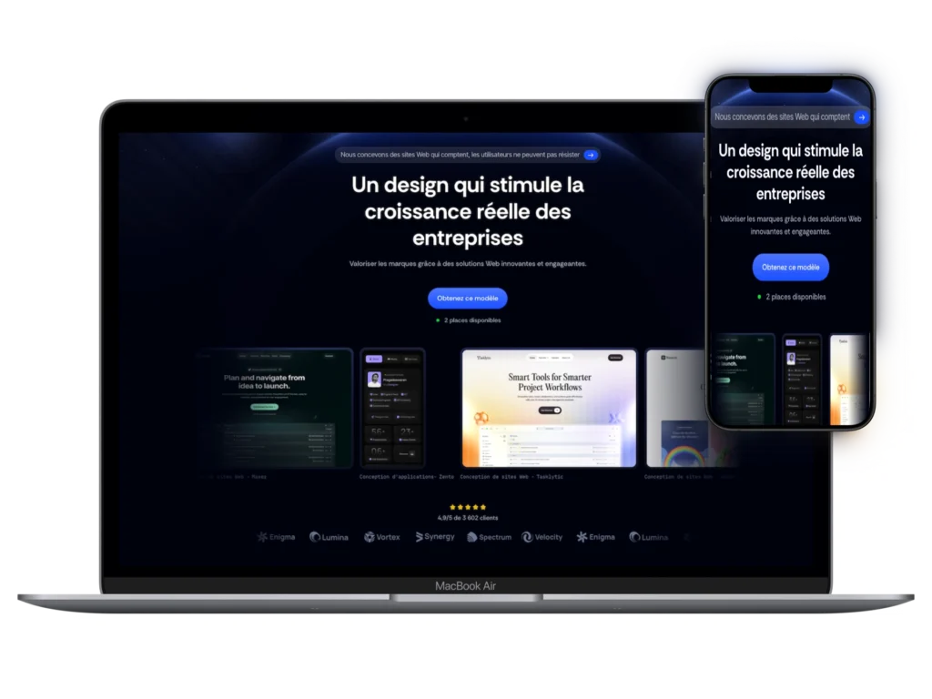 Nos sites internet et créations graphiques se distinguent par un design moderne et épuré, pensé pour captiver et engager vos utilisateurs. Nous allions esthétique et performance pour garantir une présentation soignée et une navigation fluide, adaptée aux tendances actuelles.
